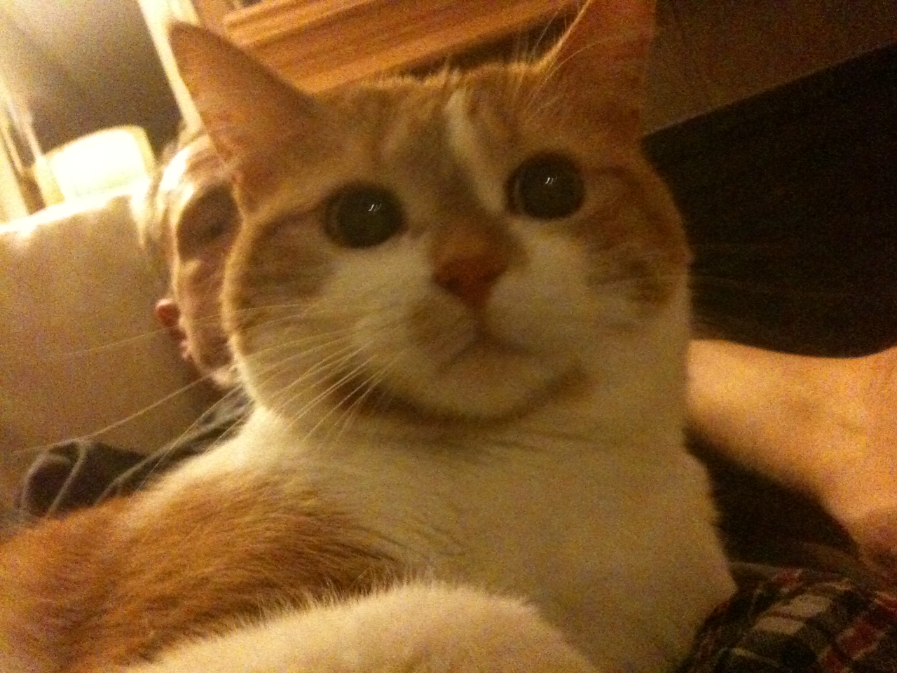 Ellie, of course, was her normal subdued self and let them do their thing. Malachi: no problem either, until a couple of days later. Malachi is a sleek, panther-like creature, with short, glossy, black hair that he likes to keep clean. Really clean. He bathes a lot. A bit of kitty OCD maybe? The spot on his throat where they shaved to draw blood bothered him, and he ended up licking it raw. So he became a cone-head for a while. It was kind of pathetic, watching him try to back out of it, run into things, struggle to eat and drink, etc. But, at the same time, also pretty hilarious and entertaining.