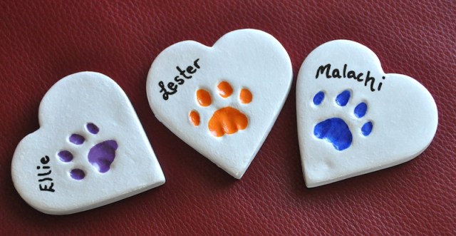 The owner of Calico Hills made these pawprints of our kitties for us. Thanks so much for loving our babies so much - we are going to miss you.