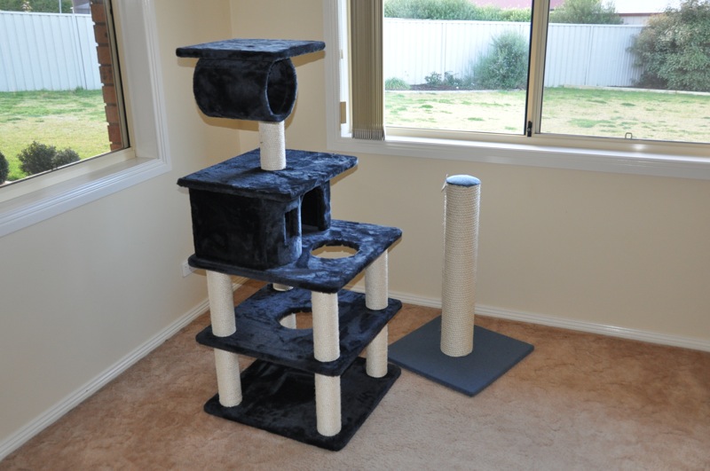 The kitties' new 'activity centre' (it really should just be called a sleeping centre) and one of the scratching posts.