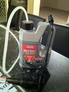 Mortein: This is the most important word in Wagga. We thought it might be some odd hybrid of the French morte (death) and insect, but according to Wikipedia (and they are always right!) it means ‘dead one’ from the French dead (mort) and German one (ein). Mortein is a wonder spray that gets rid of spiders! You spray it around the outside of the house, around door frames, windows, etc., anywhere that a spider might live or be able to get into your house. Houses here aren’t well sealed, so there are gaps everywhere. Mortein creates a barrier between you and the spiders outside, and supposedly lasts for 6 months. And it coaxes them out of the crevices, and kills them. It’s evil! Wonderful, wonderful stuff. We happened upon it in Bunnings one day, and thought we would give it a try, though later one of Lisa’s colleagues mentioned it as something we should know about. Dan sprayed around the house, and by the next day there were about 25 to 30 spider corpses around the outside of the house. Most were harmless ones like wolf spiders, but he did get rid of one whitetail and one redback(!). Some died so quickly that they were hanging from a web string (we had to be careful not to walk into any of these). So we’re winning the game. Dan: 2; deadly spiders: 0. We recently bought a can of Mortein indoor, to spray around walls before our furniture arrives (and no, it’s not toxic for kitties).
