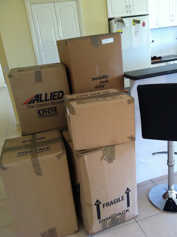 It didn't take Bob and Craig too long to unpack these boxes. They just put everything on the counter and we tried to keep up with them, getting stuff into cupboards.