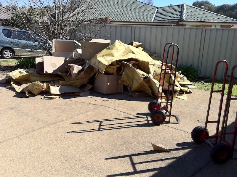 Around 9:30 am, Craig and Bob show up with our stuff. They were great! Craig was obviously in charge; in his early to mid-40s, he was the driver, and spent a lot of time on the phone while Bob, who was probably around 20 yo, unloaded and carried most of the heavy stuff. They were from Melbourne, and had been working in Wodonga because there wasn’t much going on in Melbourne; this week Wodonga wasn’t too busy either so they got a job in Wagga. Who knew that Wagga was the hot place for movers these days?