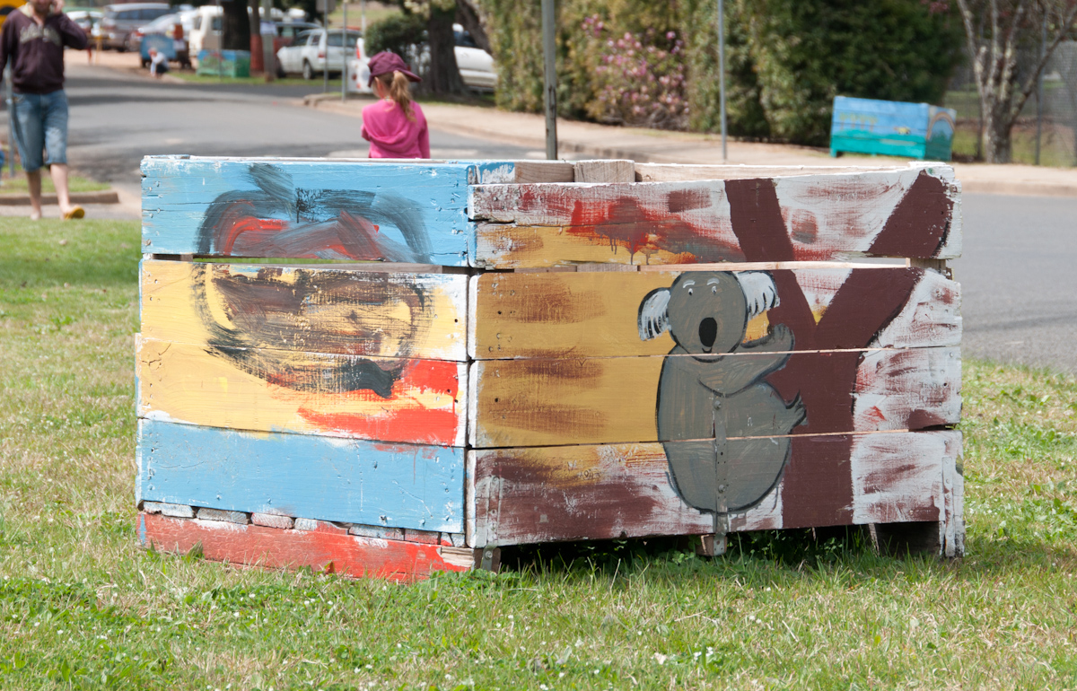 The streets of Batlow are littered with apple-picking boxes. We're not sure if they were just there for the festival, or they are there permanently for people to store their koalas in.