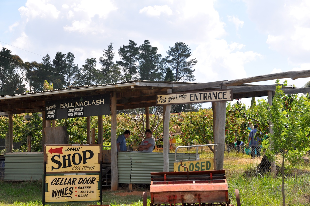 The super-friendly woman at the info booth told us which growers were open that morning (she calls each day to confirm) and we found out that all of them were south of town, on the route we had driven in on. We could have gone back as far as Wombat (yes, there is a town called Wombat, hehe 🙂 ), but opted instead to go to the one closest to town: Ballinaclash orchard. Dan later said it wouldn’t have been his first choice, as it seemed a bit too commercial, but it was a great place.