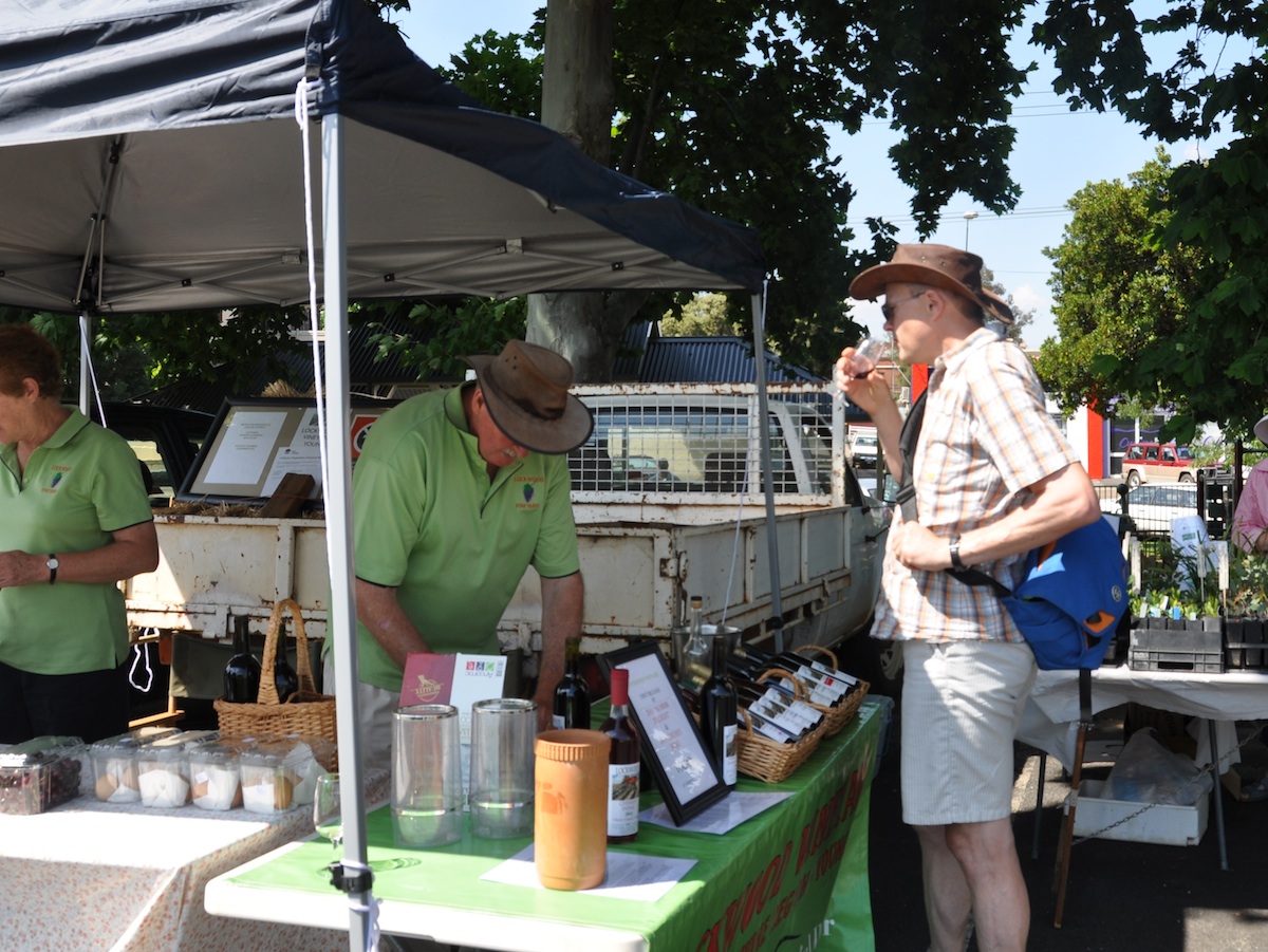 Not much happening at the Young market at 10 am, but Dan managed to find someone selling wine. Lockwood is a very small winery. Most of their grapes are sold to bigger wineries, but they produce a few hundred cases under their own label each year. Take special note of Dan's new kangaroo leather hat!