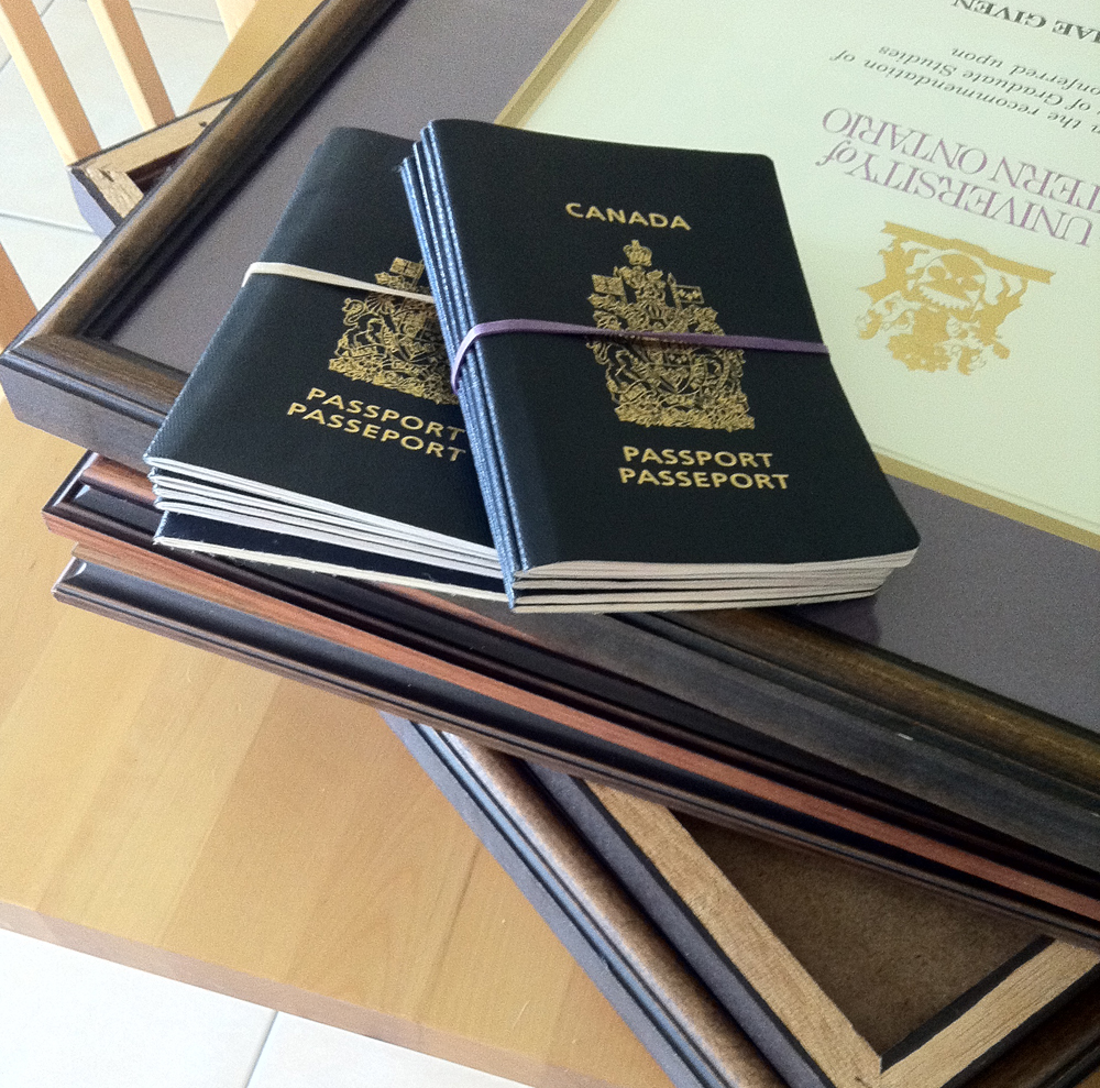 A big pile of photocopying to be done. And here's a tip for anyone who thinks they might someday migrate: your old passports are more than just good souvenirs! We have no idea how we would do this application without them.