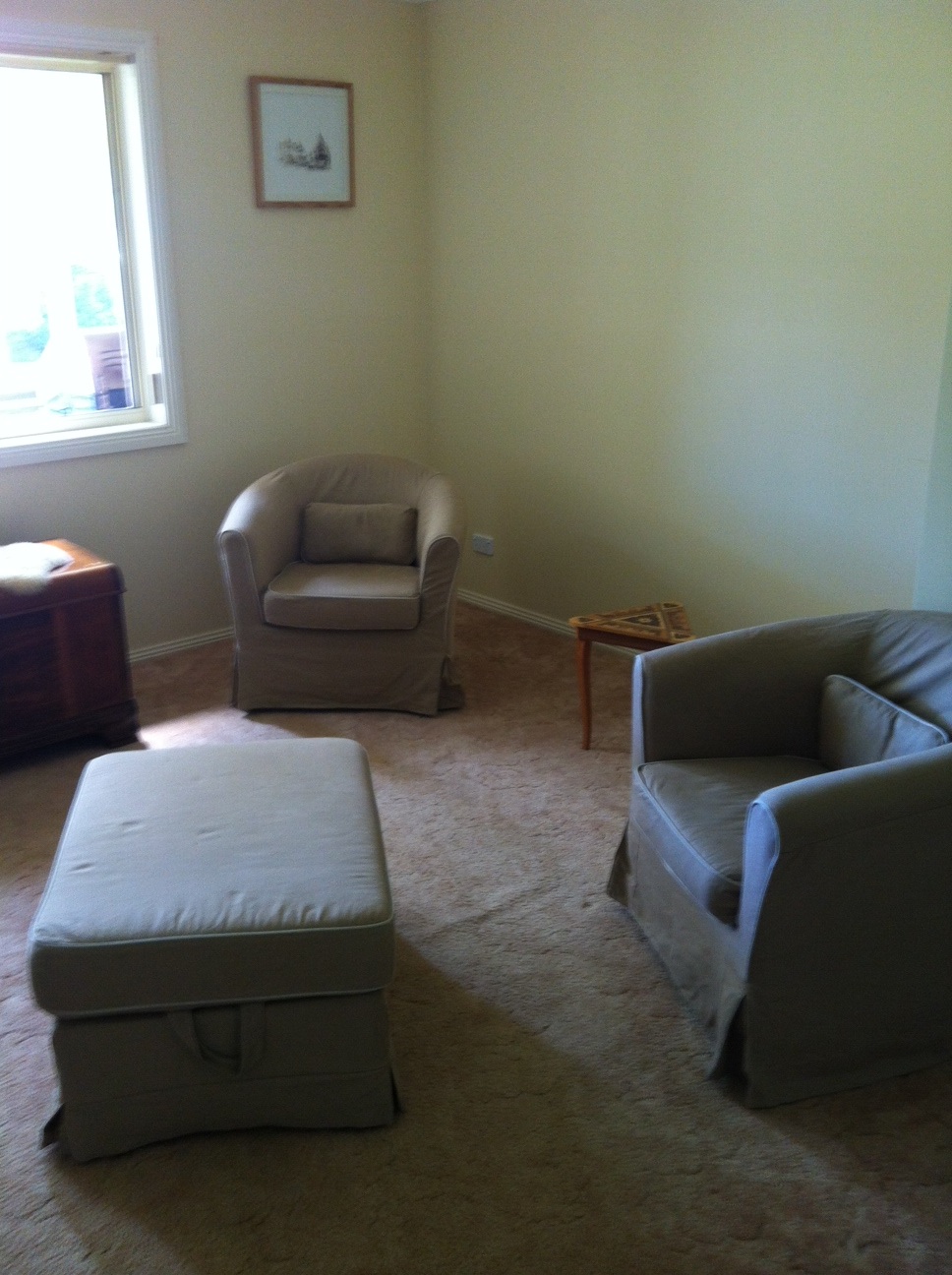We've never actually sat in this room in the rental house. The only reason it has furniture is that it is at the front of the house, so visitors see it and we don't want it to look empty.