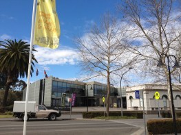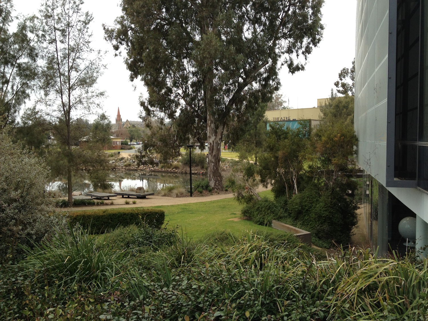 Wagga is working at revitalizing its buildings and streets. One of the nicest things they’ve built recently is the civic centre. It’s the town hall, the art gallery, the theatre and the library all rolled into one lovely building. It’s right in the centre of town and next to a pond with an amphitheatre. They have the farmers’ market on the lawn. Across the street they have a park with an eternal flame that memorializes the wars that Waggians (hmm) have participated in. I would consider this the heart of Wagga.
