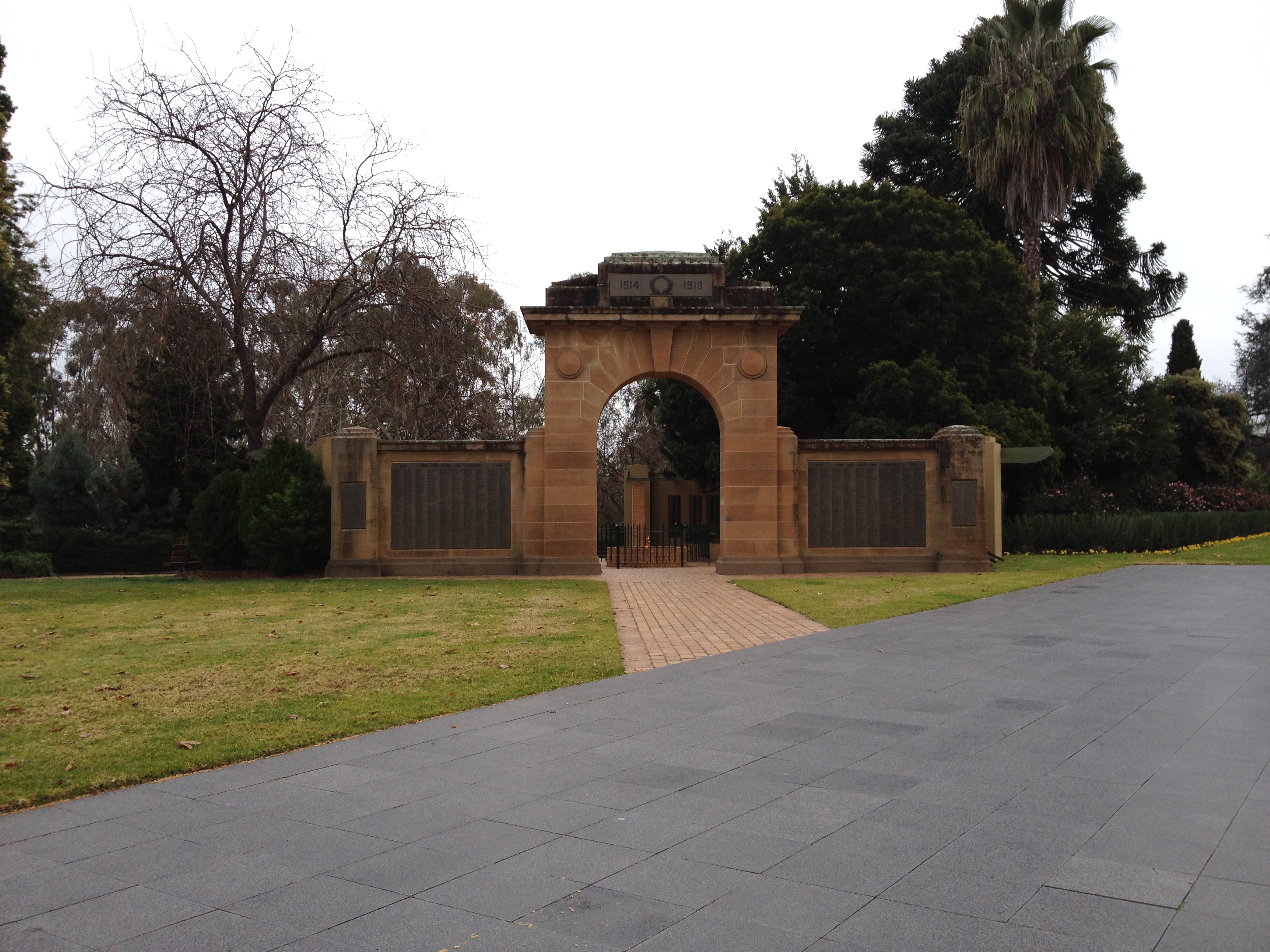 The entrance to the park across from the Civic Centre and the eternal flame