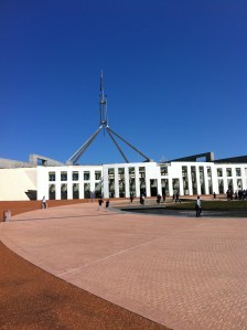 In the past six months or more Lisa has visited most of Australia’s capital cities. All of these trips have been for work, but Lisa is also very good at squeezing in some shopping, dining, museuming (is that a word?) and other down-time activities around the edges of a crazy work week. Her Oz tour (Hmm… Profapalooza needs a cool t-shirt; perhaps our next contest?) started shortly after our arrival. Stop 1 was Canberra, which is just a short (2.5 hour) drive from Wagga. This is also a regular shopping work haven for Lisa, as she’s been appointed to the Australian Research Council this year. Her first trip included lunch at Parliament following a tour of the Parliamentary Library (yes, the politicos were in the house having lunch and yes, they serve meals on their very own special china! Very cool — at least for geek librarian types). Regular readers may even remember that Lisa had a real rock star moment on this trip — a live (20 minute!) interview on ABC radio!