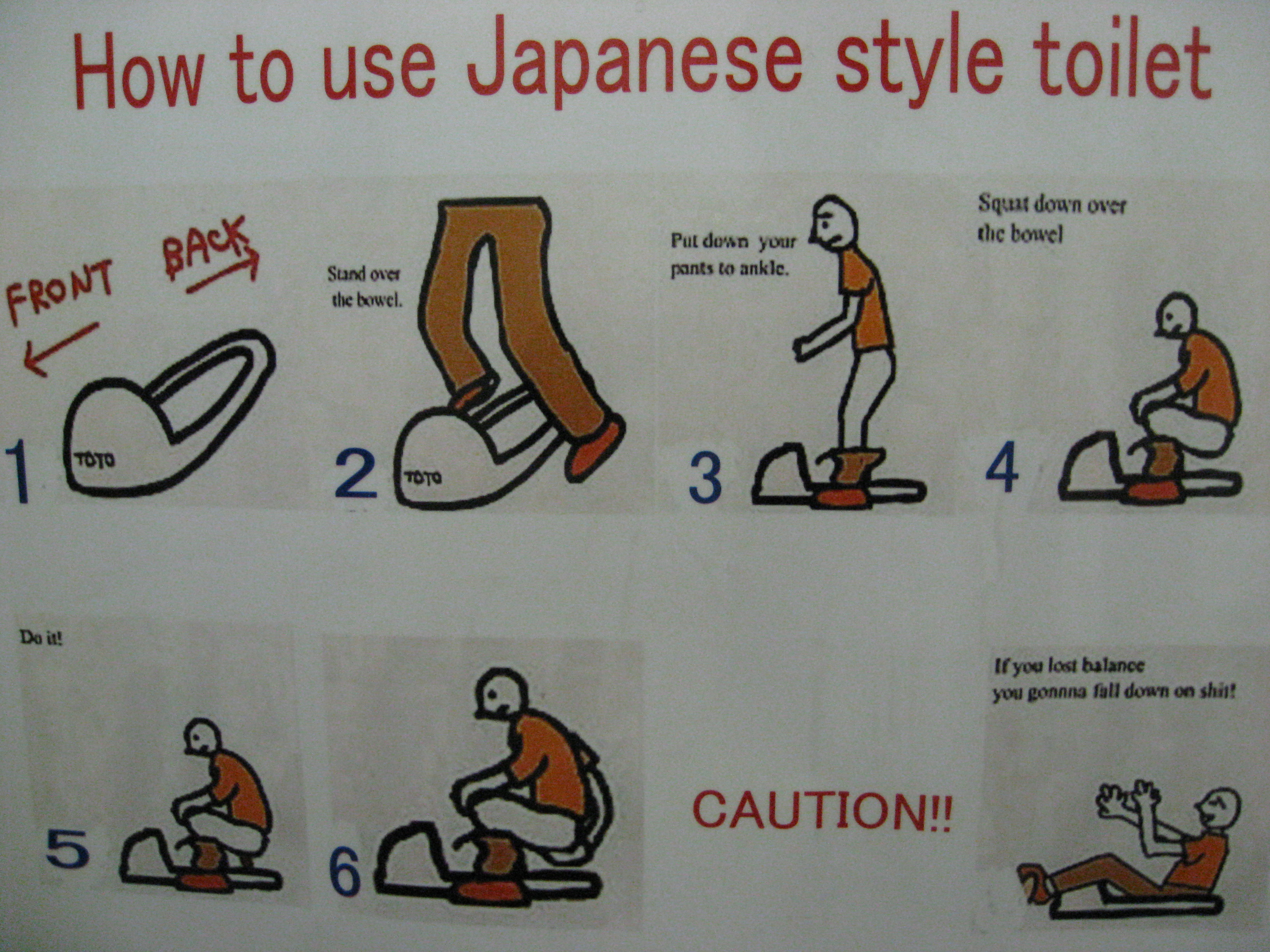 We could have put in a photo of an actual traditional Japanese toilet, or the great hand-drawn instructional picture our tour guide had, but this one, stolen from the web, was just too good not to use! You really have to click on it to enlarge and see the last image.
