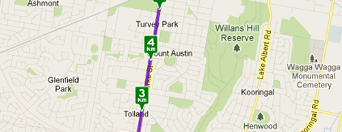 But what Hemingway didn’t elaborate on was that you not only get the contours of the country, but the sights, sounds and smells. It is on a bicycle that you really get to know where you live, and the more you do a ride, the more precisely you get to know those characteristics. So now, because I need something to write about and the most interesting thing I have done this week is ride my bike to work (not as pathetic as it sounds!), here’s a bit of a description of the ride from Hilltops to the CSU Wagga campus that people in a car or bus can’t experience. I won’t get as detailed as I could – I know every pot hole and magpie on the route – but just an overview of my commute.