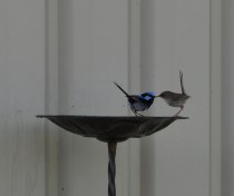 This pair of fairy wrens started a family in our back yard and moved on. Hopefully they liked our little resort, complete with spas, enough to stop by again on their way south...or north....